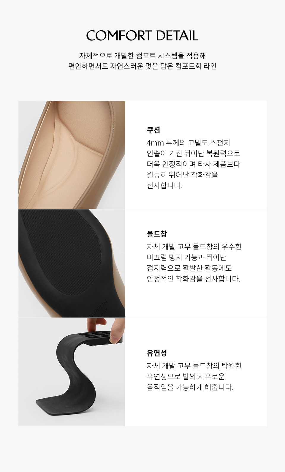 ¡¤ 4mm µÎ²²ÀÇ °í¹Ðµµ Äí¼Å´×°ú °í¹« ¸ôµåâÀ¸·Î Æí¾ÈÇÑ ÂøÈ­°¨À» ¼±»çÇÕ´Ï´Ù.
